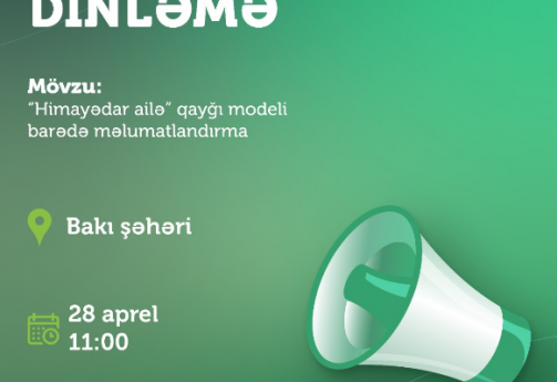 İctimaiyyət nümayəndələrinin iştirakı ilə keçiriləcək dinləmə “Himayədar ailə” qayğı modeli mövzusuna həsr olunacaq.