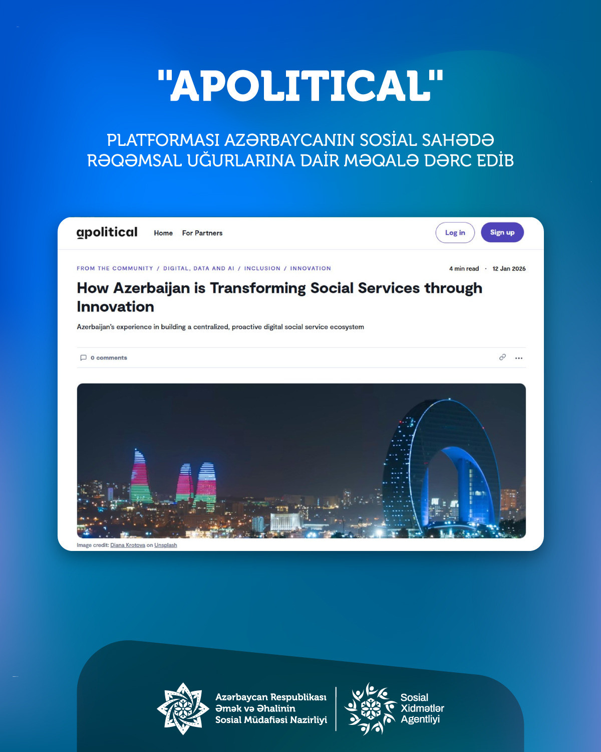 Böyük Britaniyanın “Apolitical” platforması Azərbaycanda dövlət sosial xidmətlərinin elektronlaşdırılması istiqamətində son illər əldə edilmiş uğurlara dair məqalə dərc edib.