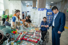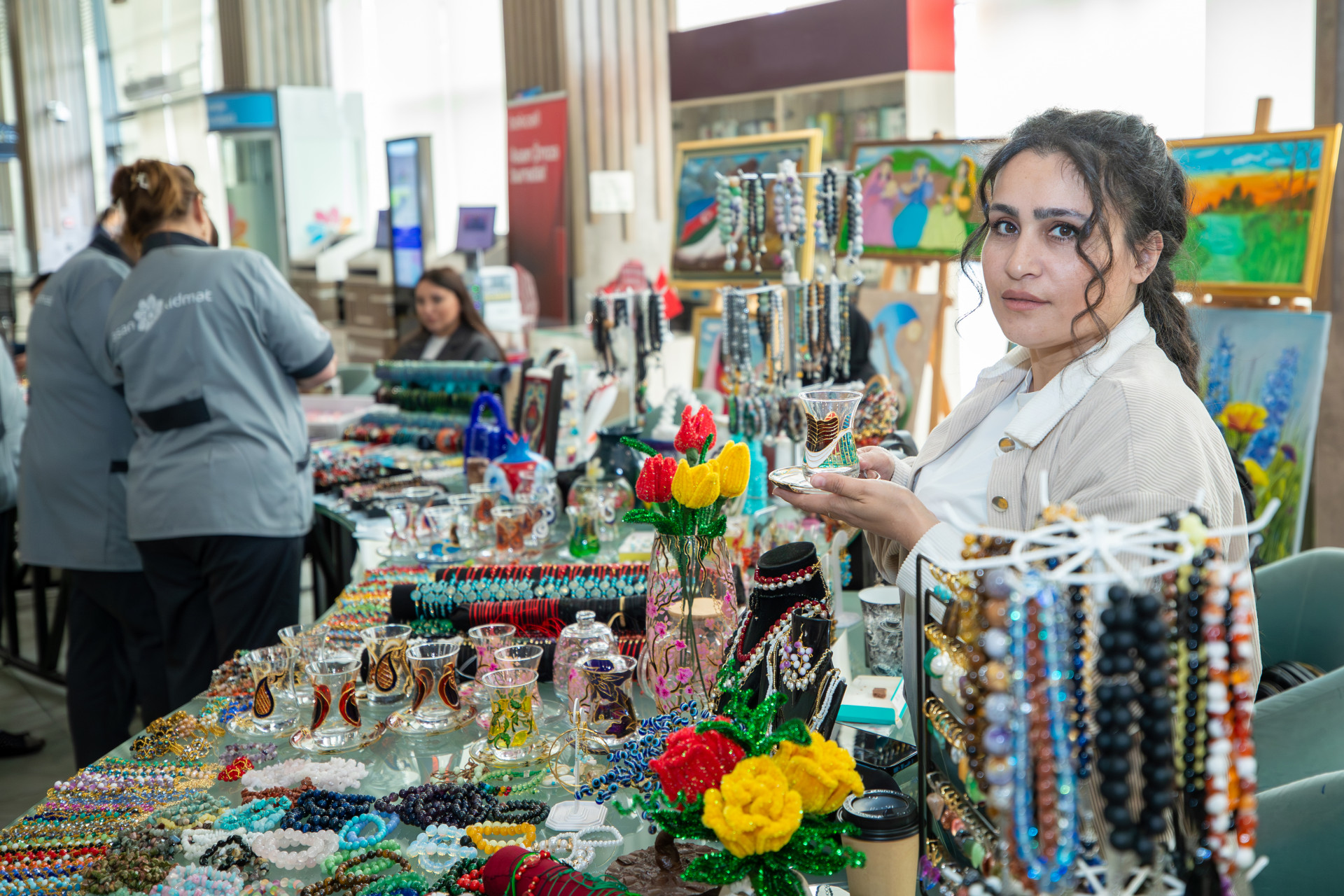 Əlilliyi olan şəxslərin əl işlərindən ibarət növbəti satış-sərgi keçirilib