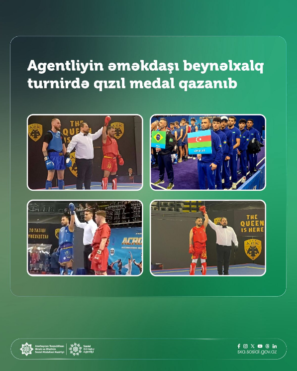 Əmək və Əhalinin Sosial Müdafiəsi Nazirliyinin tabeliyində Sosial Xidmətlər Agentliyinin əməkdaşı, Vətən müharibəsi əlili Ruslan Şıxıyev “Acropolis International Wushu Open Tournament” beynəlxalq turnirində qızıl medal qazanıb.