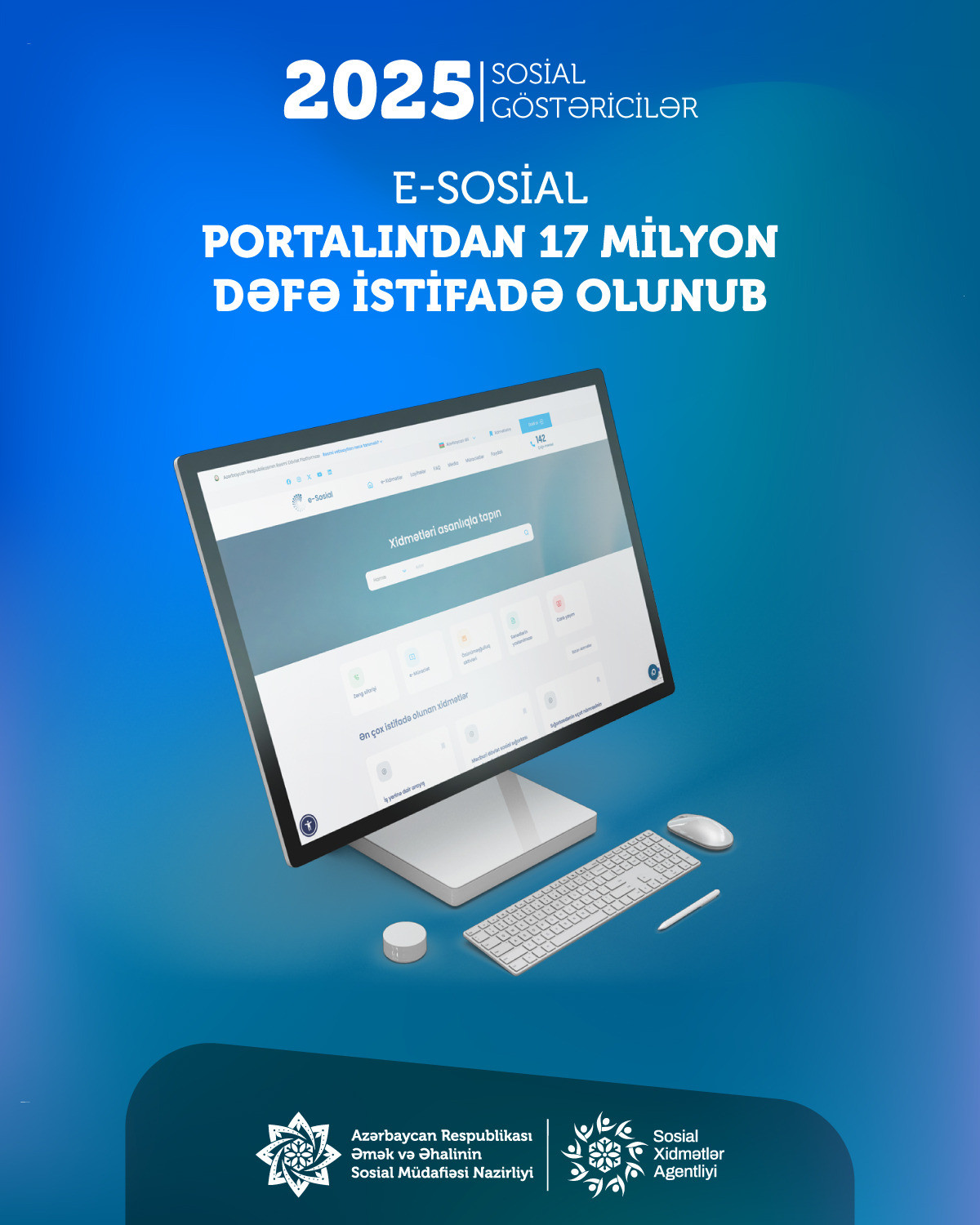 Əmək və Əhalinin Sosial Müdafiəsi Nazirliyinin “e-sosial” internet portalında qeydiyyatdan keçən aktiv istifadəçilərin sayı 2,7 milyonu ötüb.