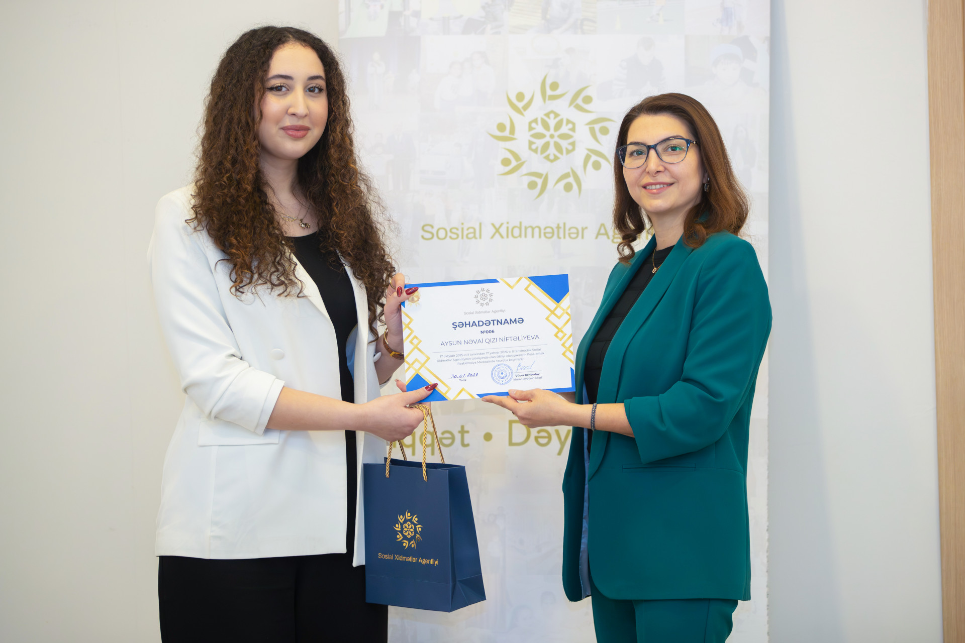 Əmək və Əhalinin Sosial Müdafiəsi Nazirliyinin tabeliyində Sosial Xidmətlər Agentliyinin “Təcrübə proqramı - 2025” layihəsi çərçivəsində ali təhsil müəssisələrinin bir qrup tələbəsinə sertifikatlar təqdim edilib.